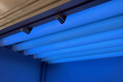 UVA-340 最佳地模擬太陽光從 365nm 到截止點 295nm 關鍵紫外短波區域。它的發光光譜能量主要集中在 340nm 的波長 處,即為 UVA-340 燈管。