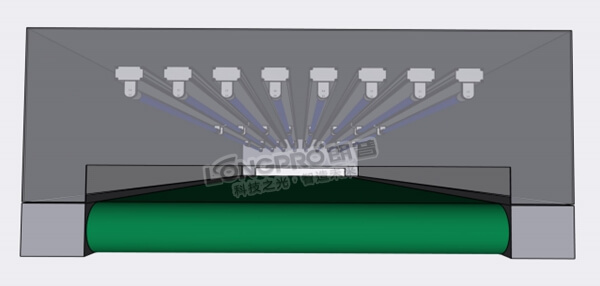 朗普科技(LONGPRO)根據(jù)紫外殺菌劑量(參考GB15981標(biāo)準(zhǔn))要求,選用朗普高強(qiáng)度紫外線(xiàn)殺菌燈HL-840(單燈150W,1m紫外強(qiáng)度:≥580μW/cm2)通過(guò)計(jì)算所需數(shù)量為8盞,紫外劑量≥ 20,000μW.s/cm2。紫外線(xiàn)燈安裝在輸送線(xiàn)內(nèi)部上方4盞,下方4盞(采用滾軸傳送,便于紫外線(xiàn)有效照射信件底部), 快遞信件在輸送線(xiàn)上勻速通過(guò),紫外線(xiàn)照射時(shí)間≥5s,從而快速有效殺菌。